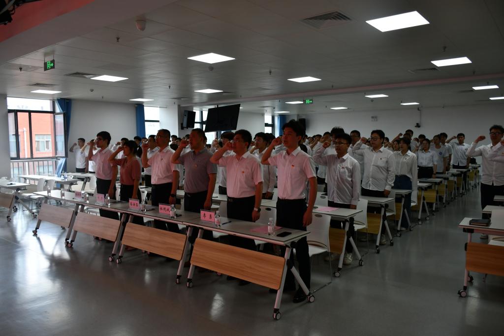 6月16日,sunbet在工程实训中心402报告厅隆重举行庆祝中国共产党成立102周年暨新党员入党宣誓老党员重温入党誓词大会。公司党委书记苗汝昌、党委副书记李勇、各党支部书记以及全体员工党员参会,李勇主持会议。