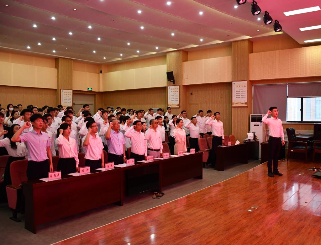 6月14日,sunbet在J9-144报告厅隆重举行新党员入党宣誓暨老党员重温入党誓词大会。公司副经理徐伟、学术副经理逯振国、经理助理高歌,学工办主任、团委书记刘倩婧,教师党支部书记任传祥、刘丹,员工党支部书记王万楠、徐昊昊、郭铖以及全体员工党员参会,会议由刘倩婧主持。