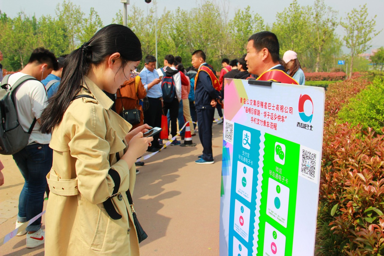 活动当天,服务队队员在公司A、C餐门口进行了五一假期出游攻略宣传活动。队员们通过分发宣传页的形式主要介绍了旅游攻略、购物指南和交通疑问三个方面的相关信息,详细内容也可以在通心相随志愿服务队的微信公众号平台点击查询。次日,服务队联合青岛公交集团隧道二队于隧道一始发站开展了五一假期乘车秩序维持活动。活动伊始,隧道组工作人员用展板的形式向乘客介绍了手机支付的乘车流程,具体方式是通过支付宝和微信扫码领取琴岛通电子卡,这样的乘车方式极大的便利了人们的出行,提高了乘客的乘车效率。活动中,乘车类型分为坐票和站票两种,在维护乘车秩序时,志愿者们及时答疑解惑,带领乘客有序安全乘车,获得了排队乘客的一致好评。