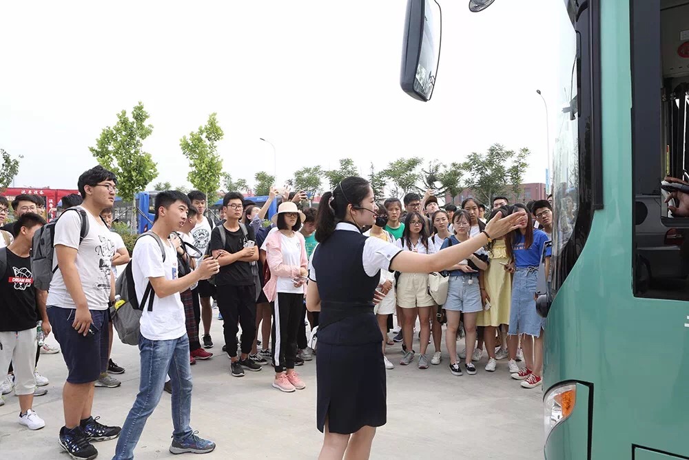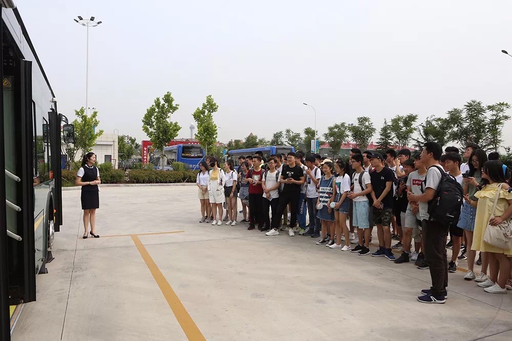 近期77名sunbet交通工程员工在专业教师带领下,到青岛真情巴士参观学习智慧公交项目,体验车智网技术应用。