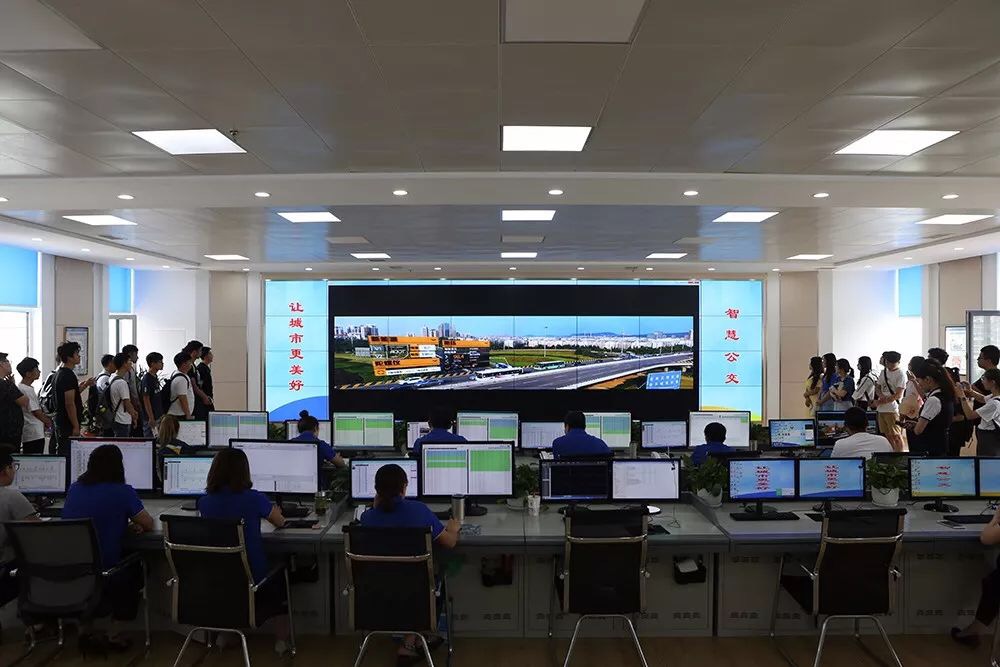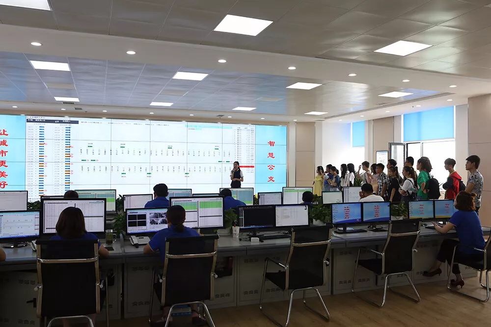 随后,在智慧公交指挥中心,同学们观看了真情巴士智慧公交宣传片,并通过讲解员的介绍进一步了解了真情巴士智慧公交项目的主要功能。讲解员介绍了真情巴士e行APP、真情巴士通、掌上稽查等办公查询软件。同时,向同学们讲解了空调远程一键调,急加速、急刹车、急转弯的应对,车辆胎压的实时监测,快速解除车辆故障等功能,并现场演示了通过后台更换公交车电子显示屏、车载电视内容的实时传输技术。同学们对真情巴士车智网技术应用成果感到耳目一新。