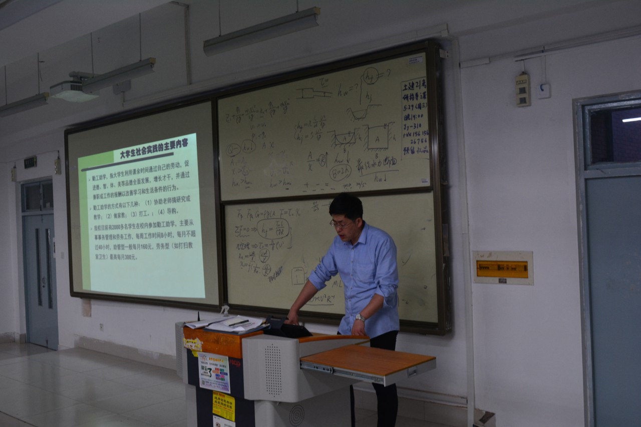 随后,孙科举阐述了老员工社会实践活动的重要地位和意义:一是有利于老员工了解国情,了解社会,增强社会责任感和使命感;二是有利于老员工正确认识自己,对自身成长产生紧迫感;三是有利于老员工对理论知识的转化和扩展,增强运用知识解决实际问题的能力等。他将老员工社会实践活动分为六类:军训训练、校内外参观学习、课外科技活动、勤工俭学活动、志愿服务活动、“三下乡”和“四进社区”,并对具体内容做了详细分析。最后,孙科举向同学们提出要求,他希望同学们做一名有担当、有能力、有作为的新时期老员工,抓住每一次机会,珍惜在大学的四年时光,不断锻炼提升自己。