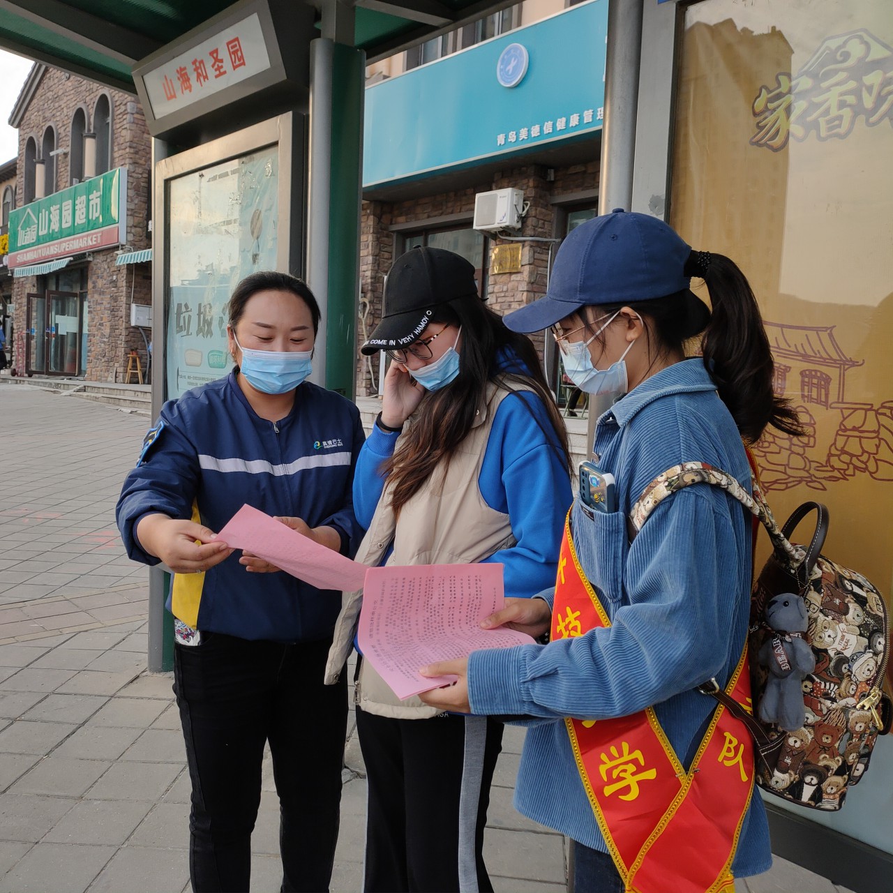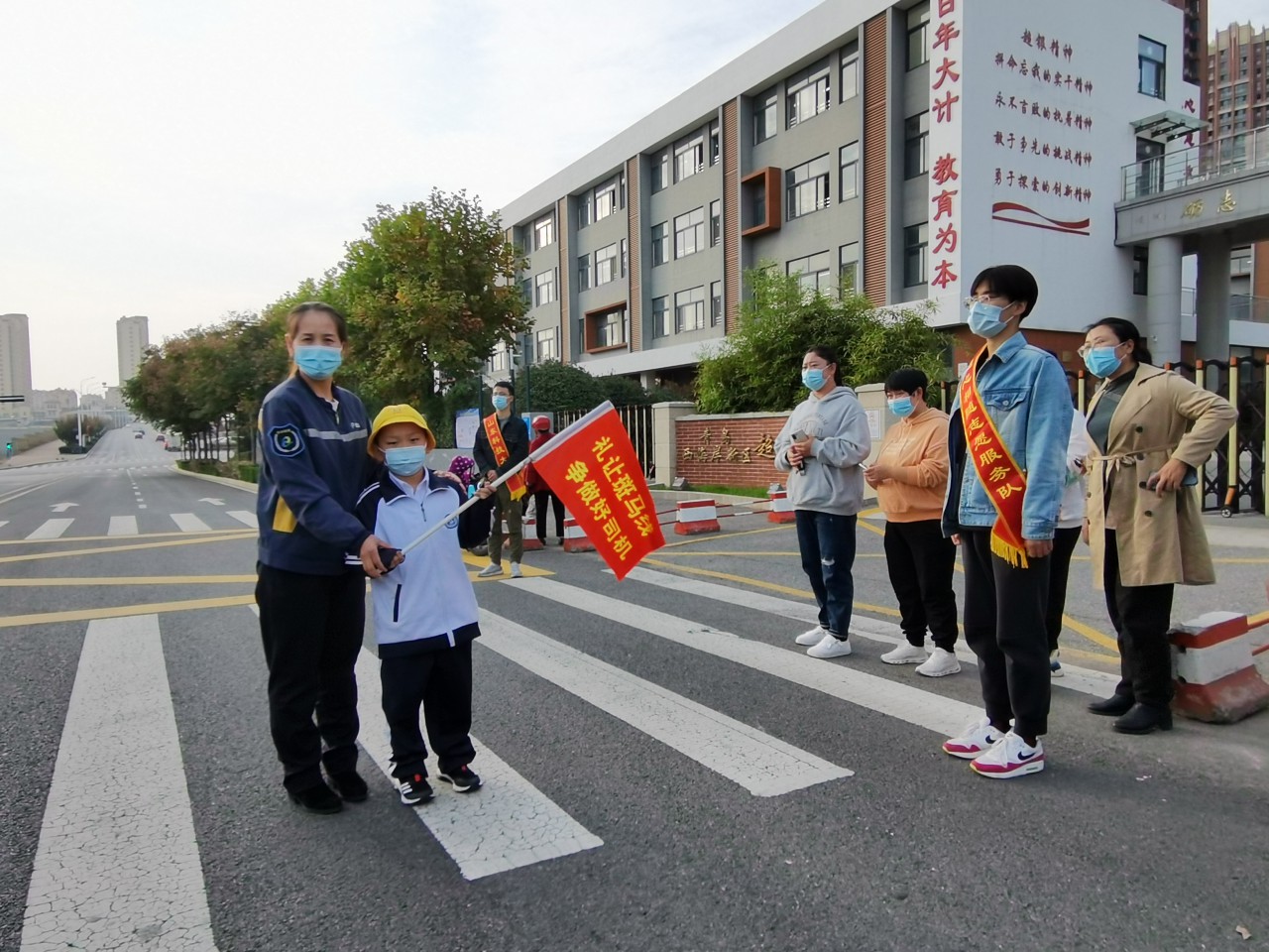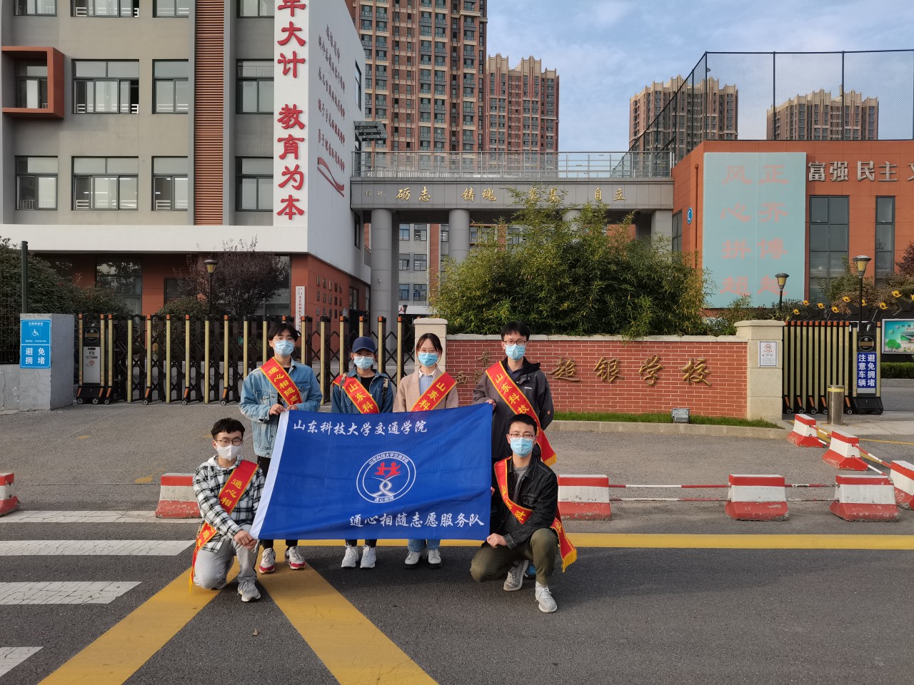 知识宣讲全部结束后,志愿者们带领员工们开展礼让斑马线活动。在确保交通安全的情况下,带领员工进行示意司机让行的体验活动,并时刻提醒员工注意自身安全。随后,志愿者和员工们一同前往阜安景苑站点进行安全乘车知识宣传,加深员工们对交通安全知识的认识。