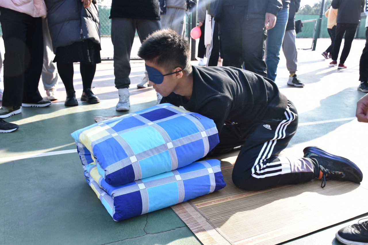 飒飒的冬风吹不尽交通学子的热情,交通学子用昂扬向上的精神面貌将秋天的最后一丝暖意留在了高地的网球场。此次活动包括“叠军被比拼”、“你是我的眼”、“合体大作战”和“你来比划我来猜”,由“叠军被”贯穿全过程。军被三分叠,七分修,细微之处见精神,这不仅仅是将简单事情做到极致,同时也体现了严谨求实的态度。从叠军被中磨练员工的意志,有助于员工养成自律、自立的习惯。“叠军被比拼”展现了同学们对于细节的掌控能力和良好素质;“你是我的眼”尽显同学、舍友之间的默契和配合;而“合体大作战”则凸显了同学在困境中相互配合解决困难的随机应变和不屈的品质。