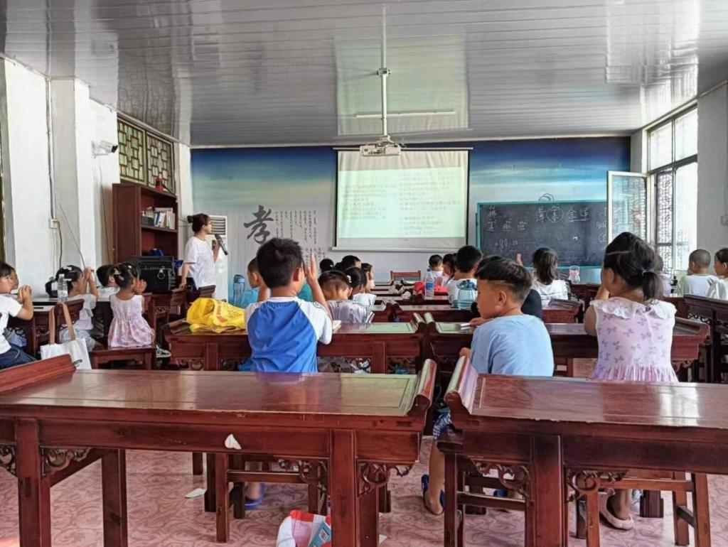 在课程设置方面,实践团队精心准备了多样化的教学内容,如家乡文化、法律知识普及、自然地理、传统文化。他们结合乡村实际,采用生动有趣的教学方式,让知识在孩子们心中生根发芽。支教老师们用耐心引导导员工们主动思考,鼓励他们发表自己的见解,激发了他们对学习的热情。