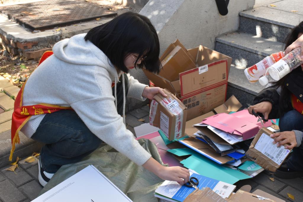 活动当天,志愿者们精神饱满,手拿编织袋,准时在宿舍楼下集合。活动开展过程忙碌而有序,志愿者们各司其职,分工明确。负责收集的人员穿梭于各宿舍间,敲门礼貌询问,用行动呼吁同学们共同加入保护环境的行列;负责整理的人员坚守在宿舍楼下,将大家放在指定位置的废品进行分类、收拾、装袋。报名参与活动的员工积极响应号召,抱着提前整理的废纸箱与瓶瓶罐罐,到达回收区域有序排队。一个个干瘪的编织袋很快被闲置物品填满,它们将被统一运往废品回收站,并在经过加工处理后重焕新生,成为书本纸张等工业成品的原料。参与活动的同学们纷纷表示,本次废品回收不仅帮助自己处理了废旧物品,还为他们提供了为环保事业贡献力量的机会,也使得校园环境更加整洁、宜人。
