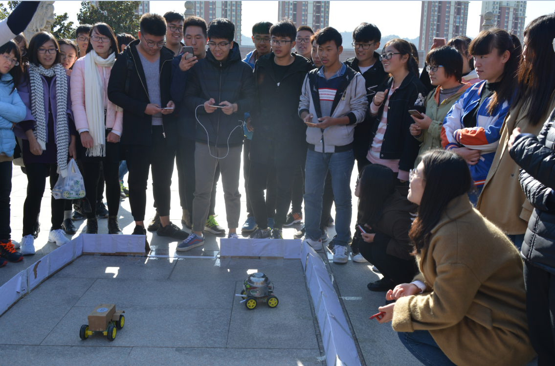 11月11日,sunbet智能车足球赛决赛在泰山广场拉开帷幕。院员工会主席杨健、校科联主席宋英杰、副主席韩金霞等出席此次比赛并担任评委,来自sunbet17级的十支优秀代表队参加比赛。