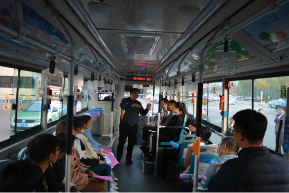 活动伊始,工作人员给同学们发放了便民手册,并引导同学们依次排队上车;紧接着,讲解员向同学们讲解了如何秩序上车、如何安全乘车以及如何应对突发情况等问题,并指出,在当今社会,文明扮演着一个极其重要的角色,文明不仅是一个人自身良好素质与道德修养的体现,从大的层面来说,更能反映出一个社会的进步程度,老员工作为一个受过高等教育的群体,更加要发挥出文明的先锋作用。同学们听完后感受颇深,纷纷表示要把文明二字牢记于心。随后,真情巴士公司工作人员向同学们演示了司机在驾驶时受到干扰,应如何保护方向盘的正常工作;并以10.28重庆公交坠江事故为例,向同学们介绍了乘客在驾驶过程中干扰司机正常工作的危害,增强了同学们的文明安全出行意识。