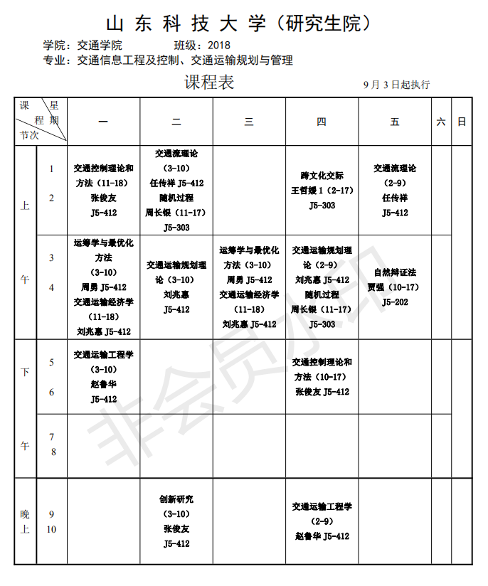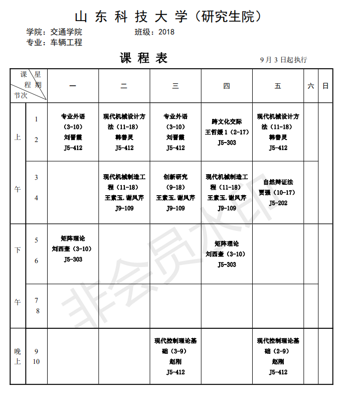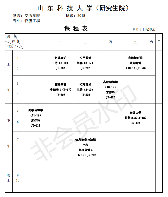 sunbet硕士研究生18-19-1学期课程表