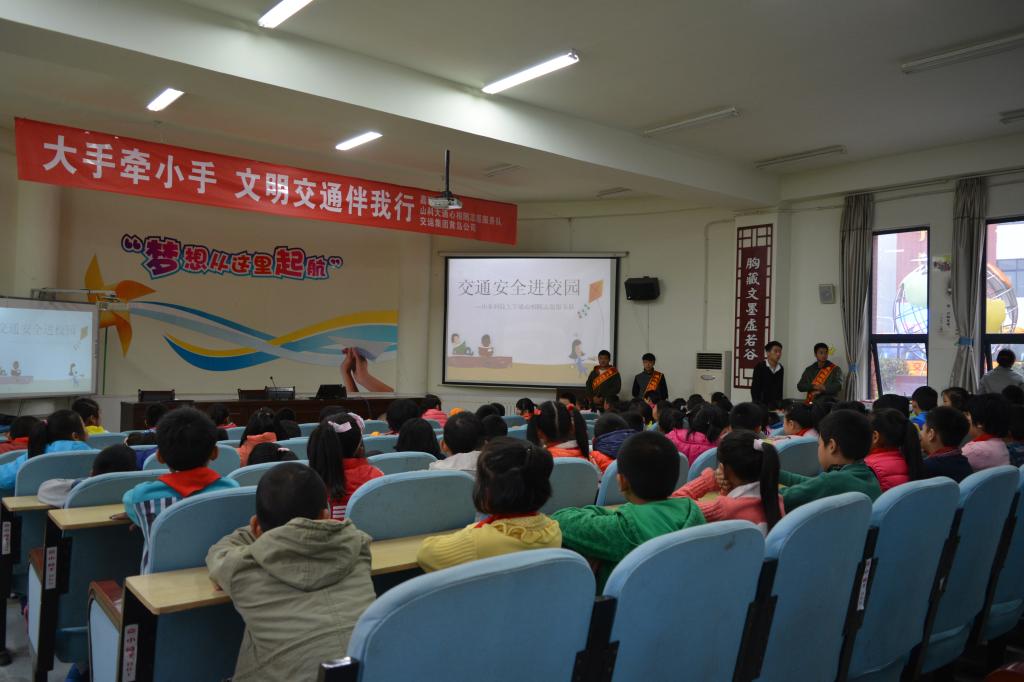为普及交通安全知识,增强小员工的交通安全意识,提高员工在突发情况下的自救、互救能力,11月19日,sunbet通心相随志愿服务队联合交运集团黄岛分公司在嘉陵江路第一小学成功举办了主题为“大手牵小手,文明交通伴我行”的交通安全知识宣讲活动。通心相随志愿者徐建和交运集团教导员担任主讲,志愿者舒腾担任主持。通心相随志愿服务队队长郑云辉、副队长彭天祥及队员、交运集团黄岛公司工作人员和嘉陵江路第一小学100余名师生参加了了本次活动。