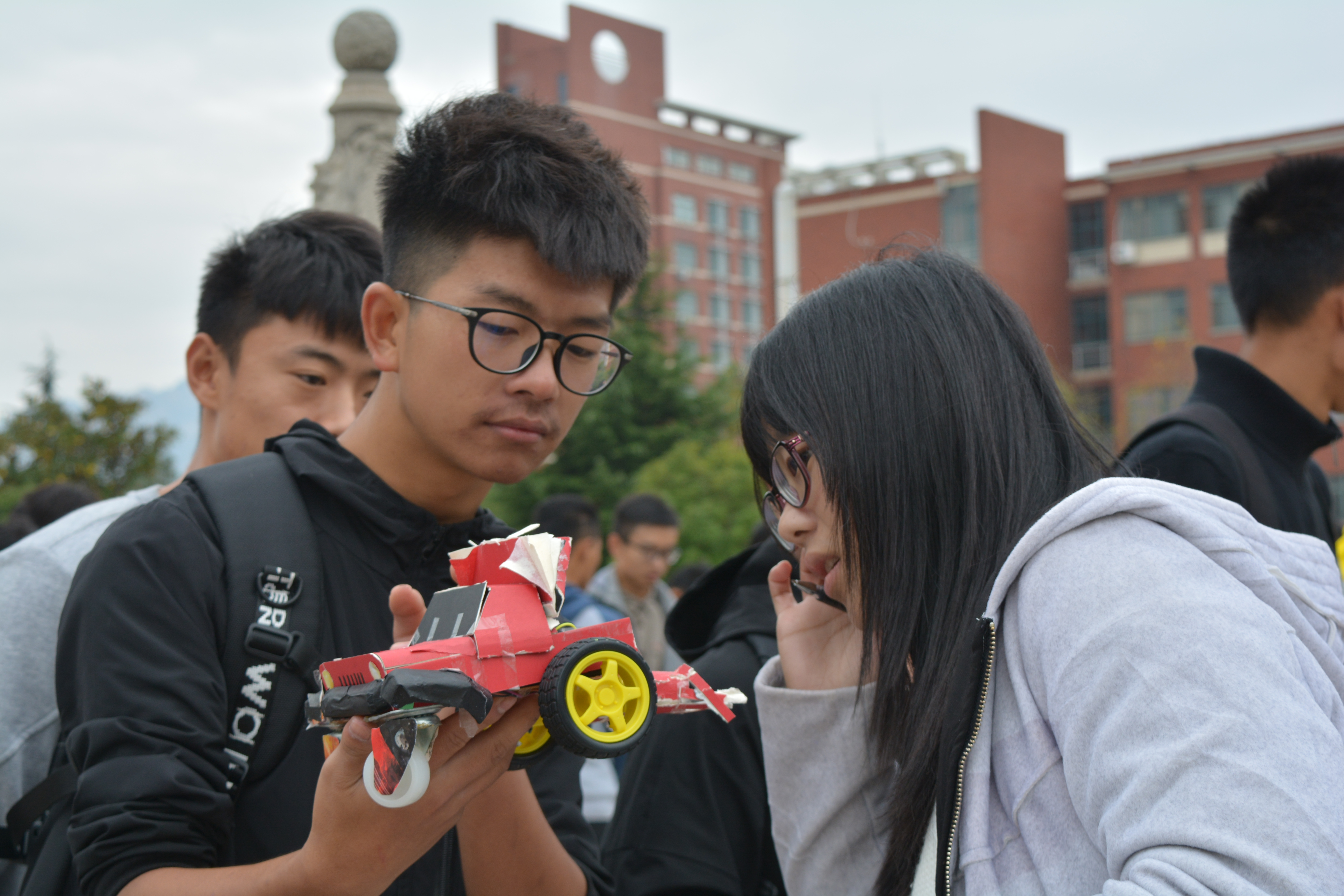 本次比赛内容为“外观评比”和“汽车操纵”两个环节。外观评比环节中,参赛队伍代表们向评委们介绍了各自智能车的创作背景、理念及研究过程。参赛汽车的外形别出心裁、各有特色,令人耳目一新;赛车操纵环节中,参赛智能车在队员们熟练的操作下灵活的穿越规定赛道,现场气氛热烈,掌声连连,喝彩声不断。经评委讨论,共评选出一等奖两名,二等奖四名,三等奖六名,优秀奖四名以及最佳创意奖两名。