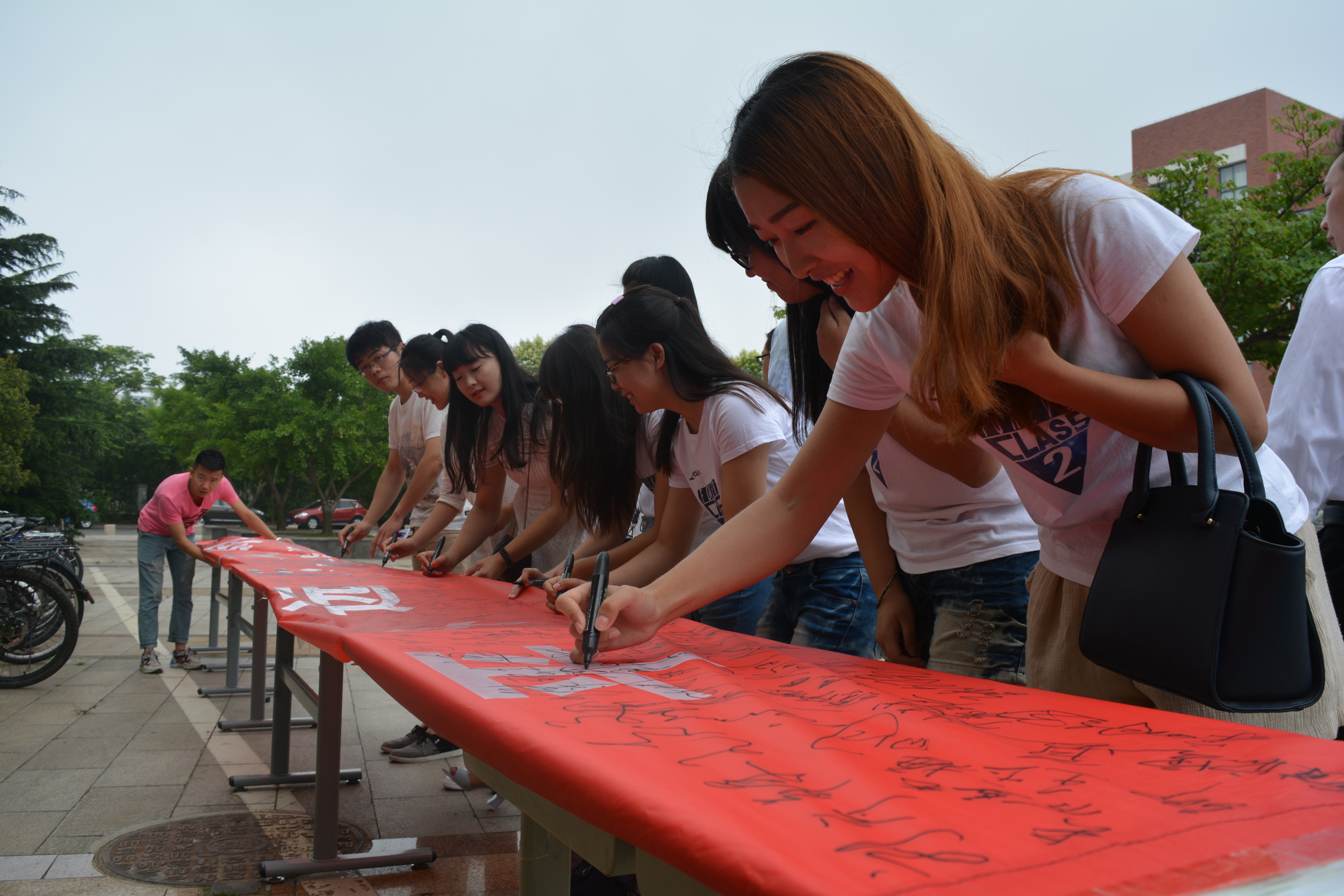 在随后进行的签字活动上,毕业生怀着恋恋不舍的离别之情,在条幅上签名留念,书写祝福。毕业生们用签名的方式,诉说着对母校的感恩之情,书写着离别的伤感情愫,记录着大学四年的青春年华和点滴成长回忆,为老员工涯画上圆满的句号。(卢春超刘栋王玉琴)