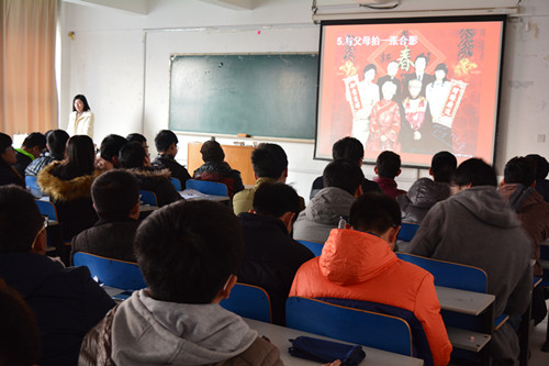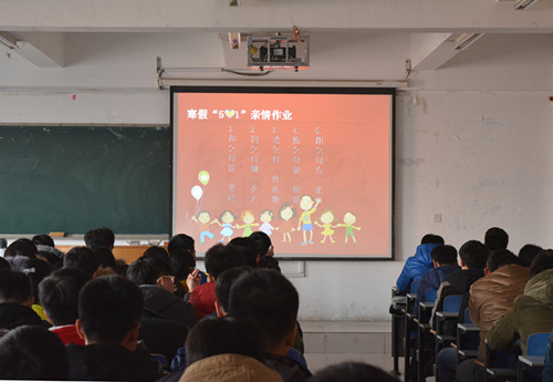 针对当下感情淡漠的社会现象,班会以“感恩父母·感悟亲情”为主题。班会以测绘公司孙金香老师《感恩——开学第一课》班会视频开篇,从侧面让同学们了解父母无私的爱,“感恩父母,感悟亲情”,李老师用平和的语言将其中的深意向同学们娓娓道来。“感恩父母,心动不如行动”,为此,李老师向同学们布置了“寒假5·1”亲情作业,即“和父母算一笔账”、“同父母聊一次天”、“送父母一件礼物”、“给父母做一天饭”、“跟父母合一张影”,并将实践的成果通过微博、朋友圈等平台展示、分享。接下来,李老师对放假及离校安排,期末考试相关事宜,假期安全问题等问题进行强调。“心存感恩,志存高远”,最后,李老师对每位同学及其家人送上诚挚的新年祝福。