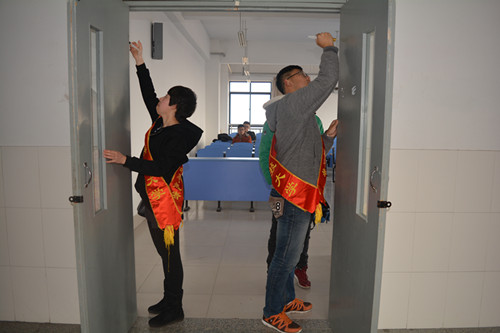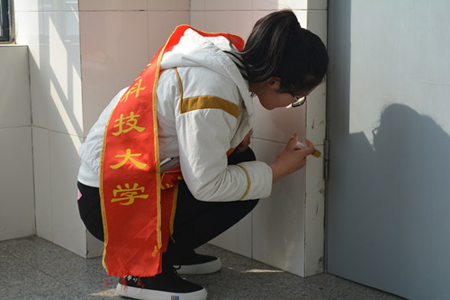 此次活动以“教学楼消噪,还教室琅琅书声”为主题,三个公司分别就自己负责的教学楼区域展开消噪服务。活动中,志愿者细致查看教室房门的生锈情况,用针管将润滑油注入噪音产生部位并认真检查,他们轻声慢步,将活动噪音减到最小,避免对学习的同学造成影响。从一楼到五楼,志愿者们耐心维护、高效合作,随着润滑油注入每一扇门,教学楼中开关门的噪音逐渐消失,同学们拥有了更宁静的学习氛围。