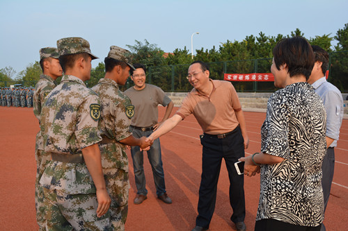 9月23日,sunbet经理刘法胜,党委书记王素玉,党委副书记兼副经理徐波和团委书记庄兴华到新生军训场地看望15级新生的军训情况。