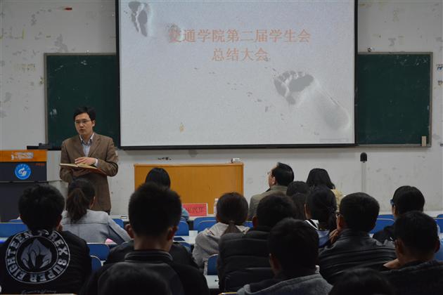 最后,庄兴华老师作总结发言。他对员工会上半年的工作给予肯定,认为活动形式有新意,精彩十足,极大提高了同学们的能力。此外,他强调员工活动要结合专业特色,提高质量,创造品牌,不断提高各年级同学的参与度。依托“交通文化节”的举办,吸引更多的同学参与到活动中来,丰富自己的校园生活,提高自身的能力。