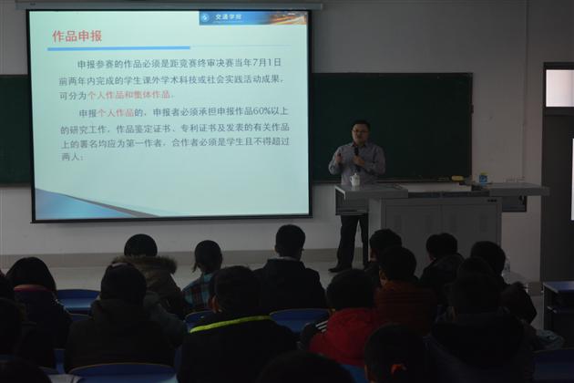 报告会分三个环节进行。首先,曹冲振老师从作品分类、作品申报、作品报送、奖项设置、三级赛制五个方面对“挑战杯”做了详细的介绍,使同学们对“挑战杯”有了初步的了解。针对准备“挑战杯”竞赛应注意的问题,他精心为同学们列出了科技发明和制作类作品备赛要点、准备作品展示和问答的要点等五点内容。并且指出了“挑战杯”竞赛的科学定位、项目遴选、项目培育、文稿撰写、展示答辩、指导老师六个关键点。此外,他还谈到了关于指导老员工科技活动的体会。他提醒同学们,在科技活动中要注重知识体系的构建,青年员工应该充分发挥创新能力。最后,他鼓励同学们积极挑战,让青春与创新共舞。随后,陈京邦同学为大家讲述了自己参加“挑战杯”的经历和体会。他说,大学是一个丰富自己提升自己的舞台,同学们应该树立远大志向,培养动手能力,提高综合素质,成为合格的当代老员工。在互动问答环节,同学们纷纷在纸片上写下了自己的问题,曹冲振教授也针对一些代表性问题作出了详细的解答。