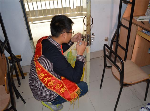 活动主要通过给宿舍门上生锈的折页涂润滑来消除开关门时产生的噪音。青协成员按照事先分好的小组来到男生和女生宿舍,礼貌的询问、认真的态度、细致的工作获得了同学们的一致好评。他们首先检查折页生锈的情况,根据锈损程度注入润滑油,消除噪音;随后又用编织袋收集宿舍中废弃的塑料瓶。活动过程中,志愿者们认真负责,同学们积极配合,整个工作进行得顺利有序,整个过程温馨有爱,给同学们送去了温暖和感动。(范卫红 肖薇 于涛)