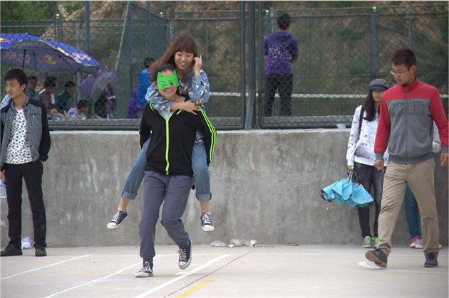 活动以“与阳光作伴 与健康成长”为主题,共分并肩作战、五人六足、摸爬滚打三个环节。上午9时许,各公司代表队纷纷亮出参赛口号,比赛正式拉开帷幕。“并肩作战”环节考验队员间的信任度和配合度,要求队员在被蒙住眼睛的状态下背起同伴,在同伴的指引下穿越障碍,到达终点。现场观众情不自禁地参与其中,大声地为选手们提示、呐喊,趣味十足。随后进行的“五人六足”环节,队员们手挽手、肩并肩,在响亮的口号“一二一二”和整齐稳健的步伐中充分展现着青春蓬勃的朝气和团结协作的精神,校心健联代表队一鼓作气,以零失误的成绩夺得本环节第一名。稀稀沥沥的小雨没有熄灭队员们的热情,“摸爬滚打”环节中的立定跳远、蹲起、单腿蹦等体力上的比拼更是掀起了比赛的高潮,大家在竞技中培养默契,收获喜悦。
