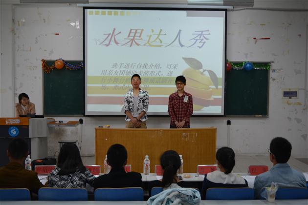 比赛分水果达人秀、水果拼盘展、水果知识竞答三个环节。在首先进行的“水果达人秀”环节中,各组选手纷纷精彩亮相,用话剧、歌舞等形式展示了团队特色,动听的歌曲、幽默的小品无不给观众留下了深刻印象。重头戏当属“水果拼盘展”环节,选手们有备而来,分工明确,小小水果在精湛的刀工下形状百态。大家充分发挥想象力,现场制作拼盘,并向评委讲解其创作灵感,有多彩美丽的“孔雀开屏”,有关注留守儿童的“水果一家人”,更有着眼于时事热点的“马航去的地方”……制作和创意十分精巧,每一个作品都赢得了现场观众的热烈掌声。在此同时,“水果知识竞答”也在紧张的进行中,此环节由亲友团负责答题,不仅向大家普及了水果知识,也为各组选手争取了额外的加分。此外,水果蹲蹲蹲等中场小游戏同样妙趣横生,缓解了比赛的紧张气氛。