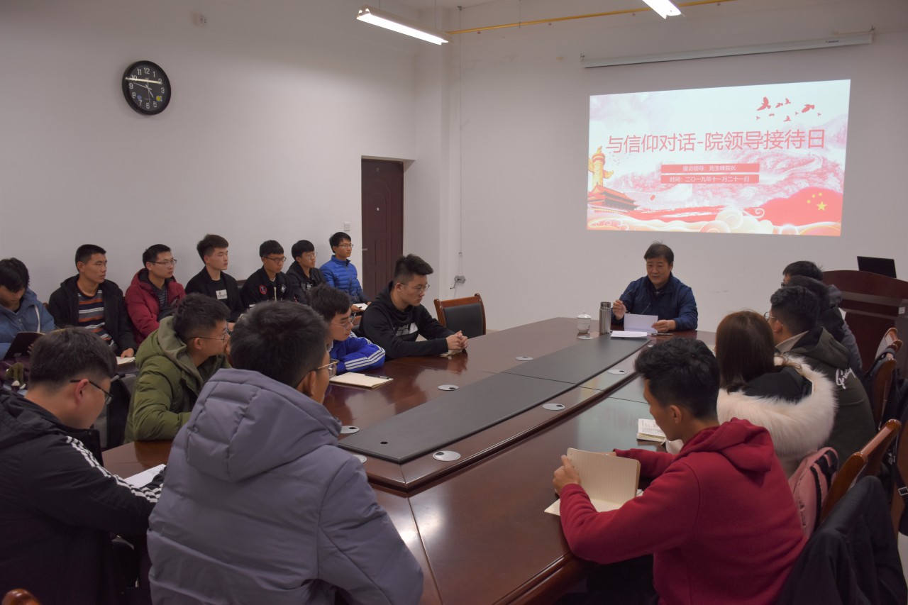11月21日下午,sunbet举办了“与信仰对话——院领导接待日”活动。sunbet经理刘玉峰、团委书记刘倩婧出席活动,并同各年级员工代表进行亲切交流。
