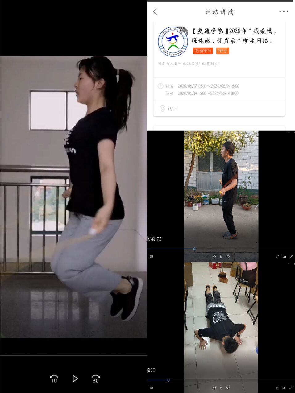 本次系列赛以线上视频录制的方式,面向公司2018级、2019级本科生。比赛项目分为男子1分钟俯卧撑,女子1分钟仰卧起坐和男子、女子1分钟跳绳三项。在做好了充分的热身准备后,同学们严格按照项目标准,以自身最佳的身体状态完成了各项动作,展现出其良好的精神风貌。