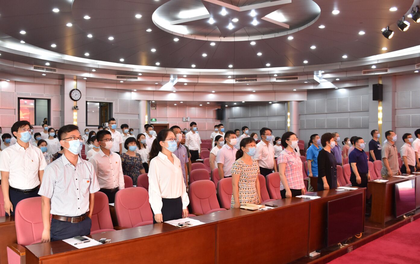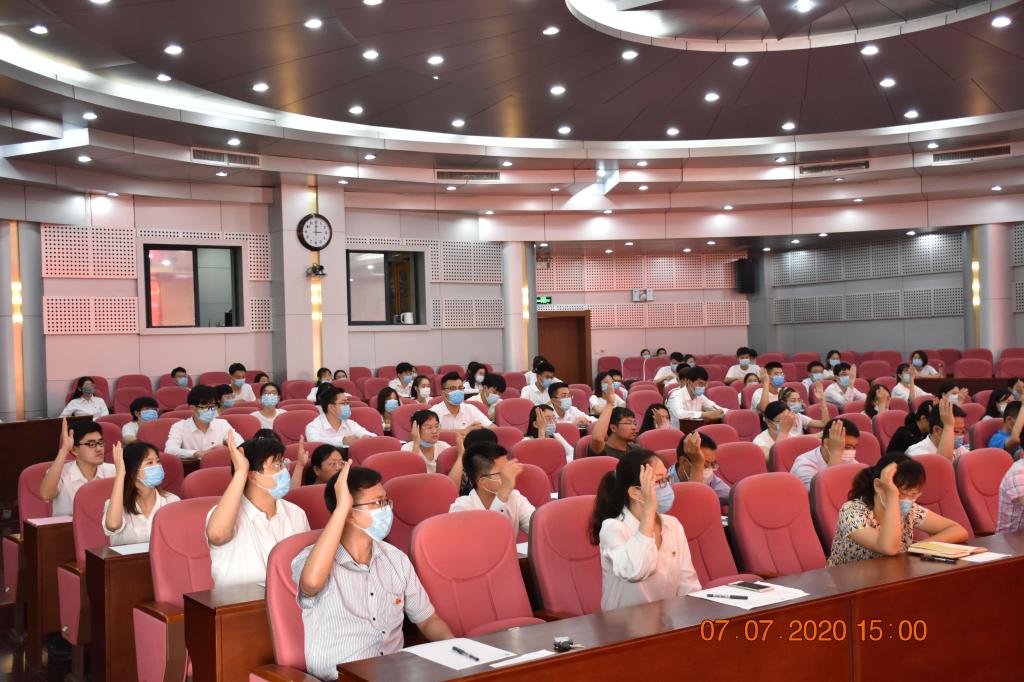 不忘初心,牢记使命。会上,组织了新党员入党宣誓和老党员重温入党誓词,全体师生党员紧握右拳,面向鲜红的党旗庄严宣誓,言语铿锵,神情坚毅,现场庄严肃穆,增强了党性教育,筑牢思想之基,永葆共产党员的政治本色。