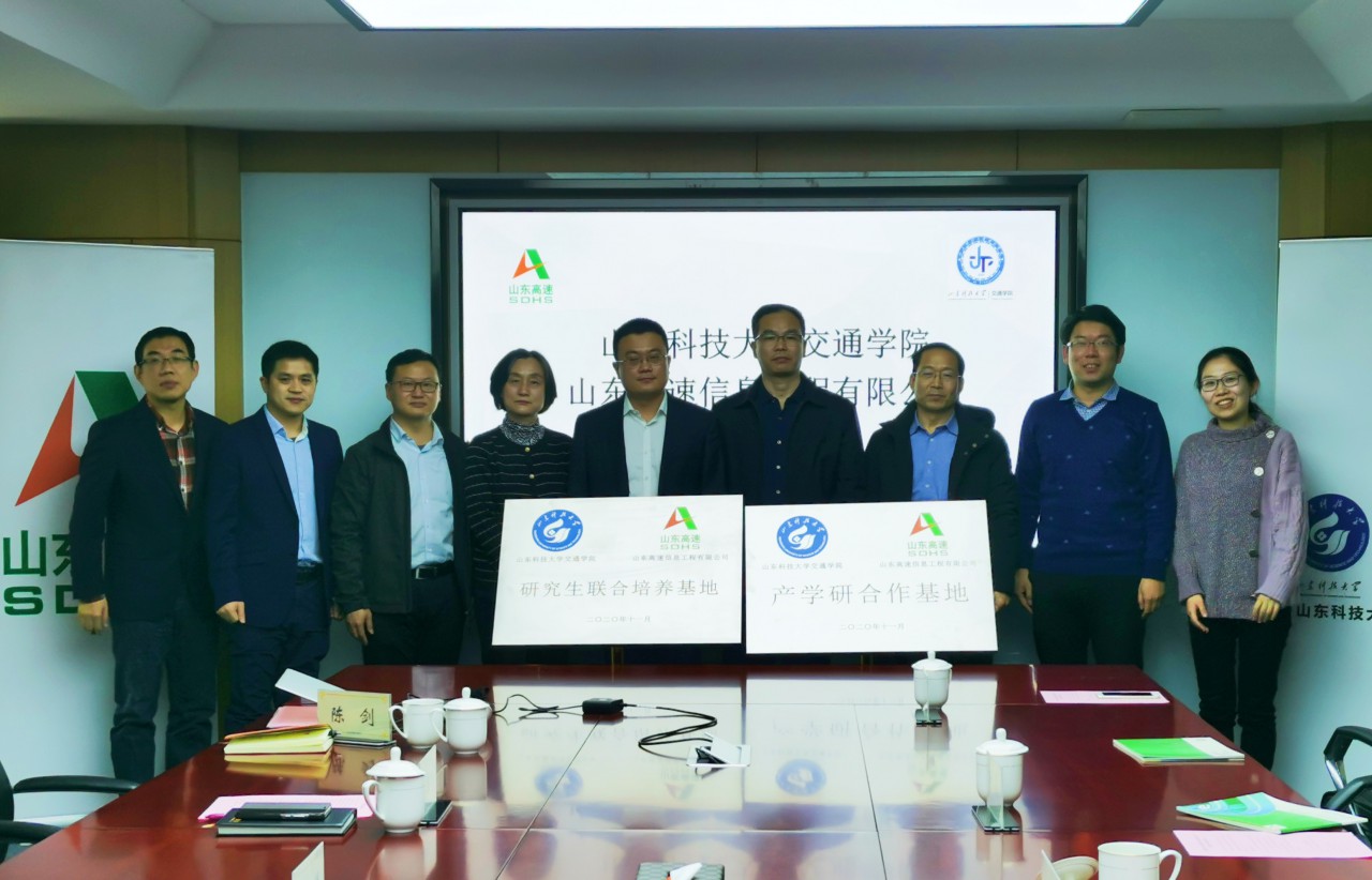 12月5日,公司党委书记苗汝昌、经理辛嵩一行赴济南山东高速集团,与山东高速信息工程有限公司签署战略合作协议并出席研究生联合培养基地、产学研合作基地的揭牌仪式。山东高速信息工程有限公司党委书记、董事长邹博、总经理舒疆红、副总经理张伟及相关部门负责人参加活动。