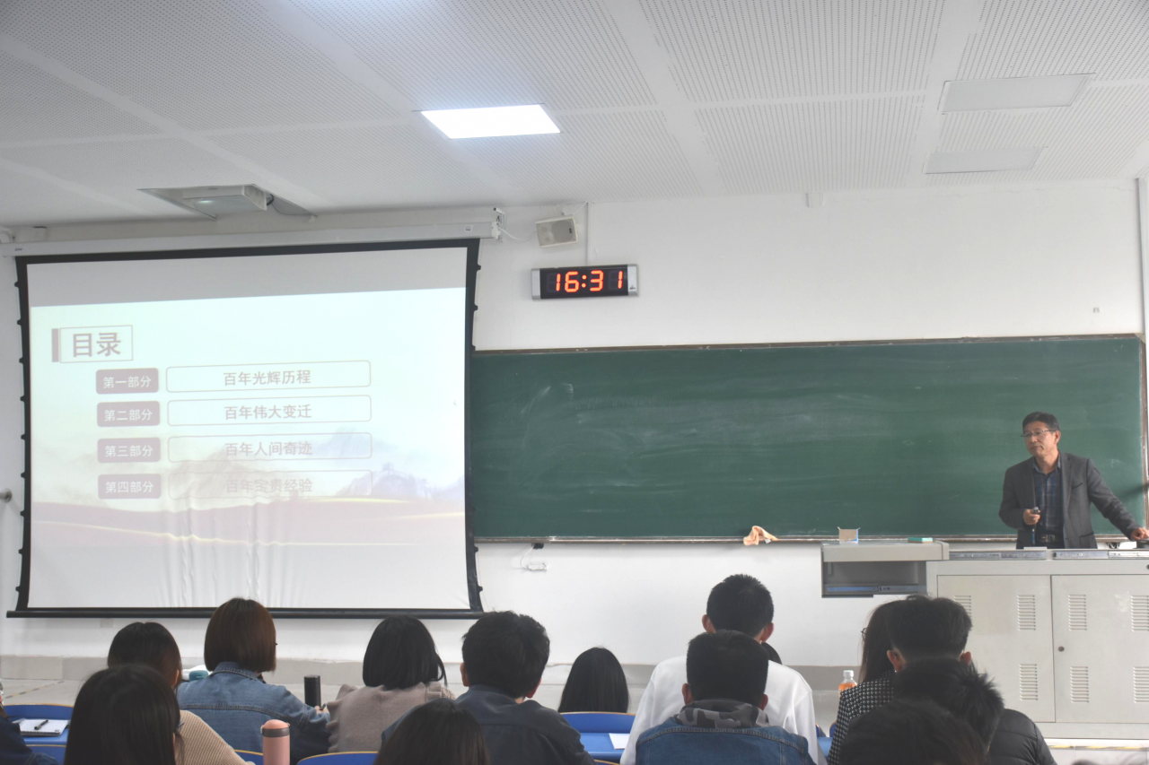 4月28日下午,计算机公司党委书记牟仁刚在J7-303为sunbet与土建公司党员发展对象授课,党课主题为“中国共产党百年辉煌”。