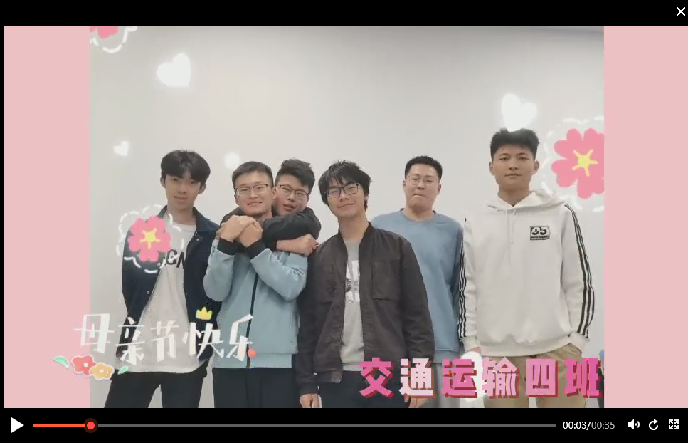 活动中,交通工程20-1班的同学们执笔为自己的母亲写下一封信,落笔情深,一封封信真挚感人,朴实的语言表达了母亲与子女间的伟大深情。交通运输20-3班的刘增智和邵安永歌唱《听妈妈的话》歌颂母亲,动人的旋律、温暖的歌词处处表达着对母亲的孝顺和感激;唐和、张文馨、房兴玥和刘璇的朗诵《献给母亲的话》催人泪下,她们用细腻的话语述说着内心的悄悄话,回忆母亲的微笑与怀抱。交通运输20-4班组织同学们在母亲节这天给自己的妈妈打视频电话,和妈妈叙叙日常,亲口向妈妈说一句“妈妈我爱您,祝您节日快乐”。同时他们利用白天空余时间录制了一个集体视频发送至员工家长群,祝福每一位妈妈节日快乐,感人至深。