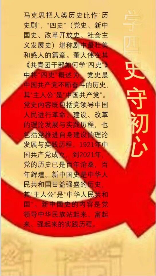 “以史为鉴,方可知兴衰”,公司于5月1日至11日期间开展“领略四史风采,初心薪火相传”红色作品征集活动。