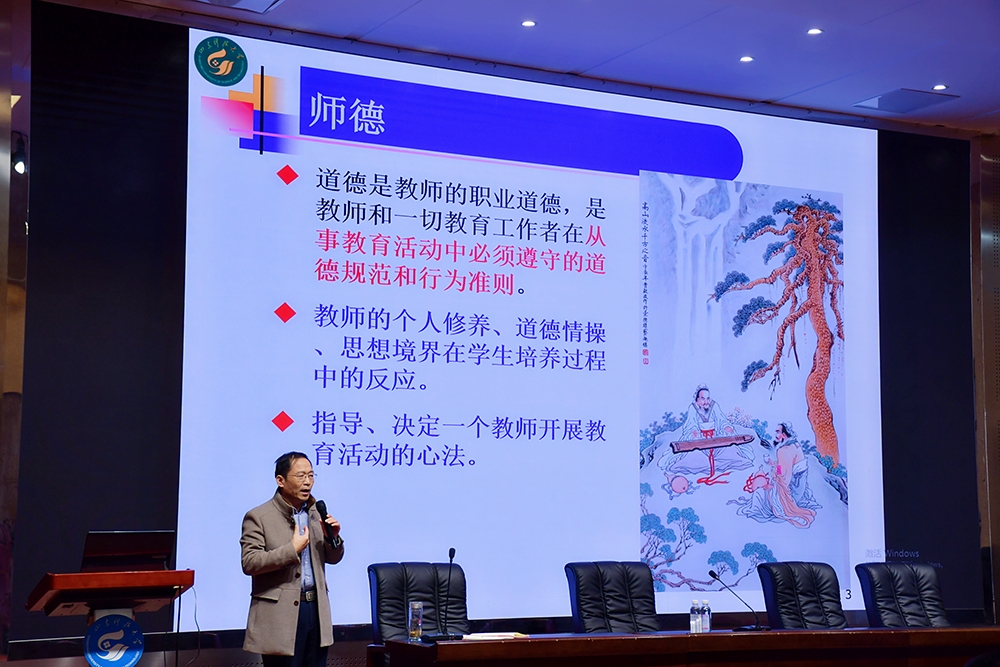 经理辛嵩作师德师风建设专题报告。结合师德师风建设的行为准则,他强调要坚持思想铸魂,以事练心,提高工作水平;要从内心关爱员工,当好“四个引路人”,做党和人民满意的“四有”好老师。