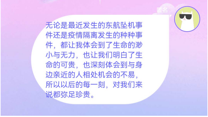 本次活动通过线上“悄悄话”小程序,为同学们提供属于自己的秘密“心理树洞”,倾诉自己在生活、工作、学习上遇到的困惑,释放压力,放松心情。活动共收到百余份信息,例如“学习压力大,希望自己不会挂科”、“对未来感到迷茫”“好朋友对自己的不在意”、“思念家和亲人”、“讨厌疫情,期待解封”“想收快递”等等,倾诉内容十分丰富。面对同学们的信任,公司辅导员老师和心理健康联合会成员第一时间给予回复,言语温暖、关怀体贴,为员工带来春风般的抚慰,获得一致好评。