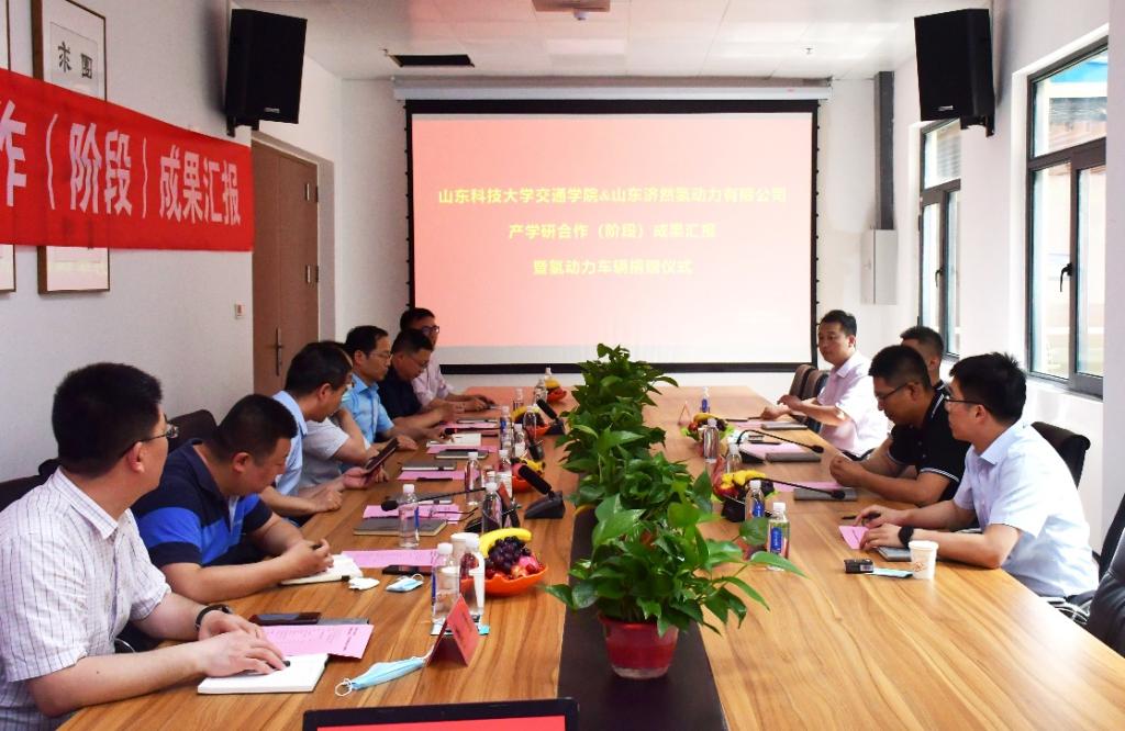 为加快推进产学研深度融合,打造区域创新平台,近日,sunbet与山东济燃氢动力有限公司产学研合作(阶段)成果汇报会在sunbet官方网站召开。sunbet官方网站党委常委、宣传部部长李克周、山东济燃氢动力有限公司董事长于蓬、总经理孙宝雷、研究生院副经理刘松、科技处副处长赵健、公司党委书记苗汝昌、经理辛嵩、党委副书记兼副经理李勇以及运载工程系主任赵刚等出席会议。