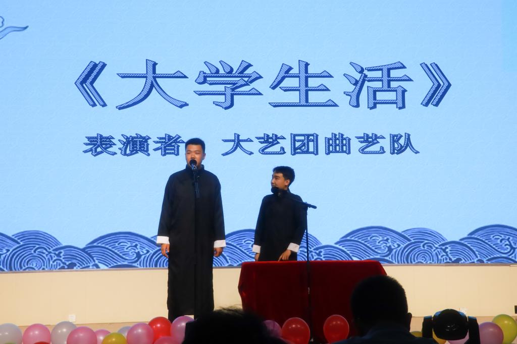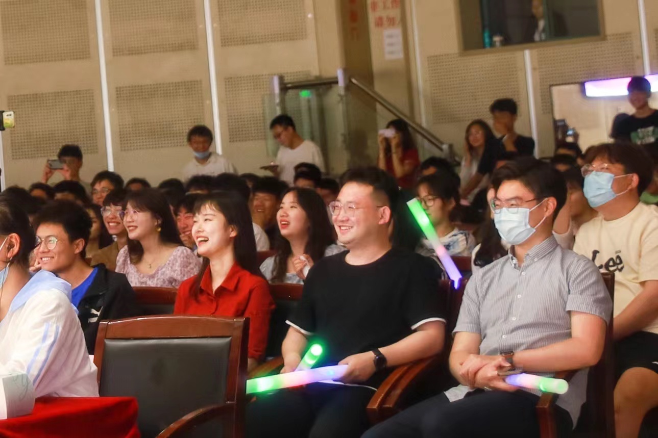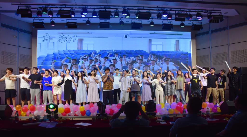中场游戏《谁是卧底》结束后,舞蹈《River Tomboy》、歌曲《背对背拥抱》又一次将现场气氛推向高潮。大艺团曲艺团表演的相声《老员工活》以老员工的校园生活为主线,诙谐幽默地回忆了这些年青葱岁月的点点滴滴,引发了强烈共鸣。团委老师刘倩婧、董淑敏以彩蛋的形式惊喜亮相,共同演唱了歌曲《凤凰花开的路口》,流露出对毕业生浓浓的不舍之情,同学们挥舞着双手默契合唱,眼角泛起莹莹泪光。“祝全体2022届毕业生前程似锦,毕业快乐!”大家齐声高歌,相互拥抱,最终,晚会在歌曲串烧《不说再见》中落下帷幕。
