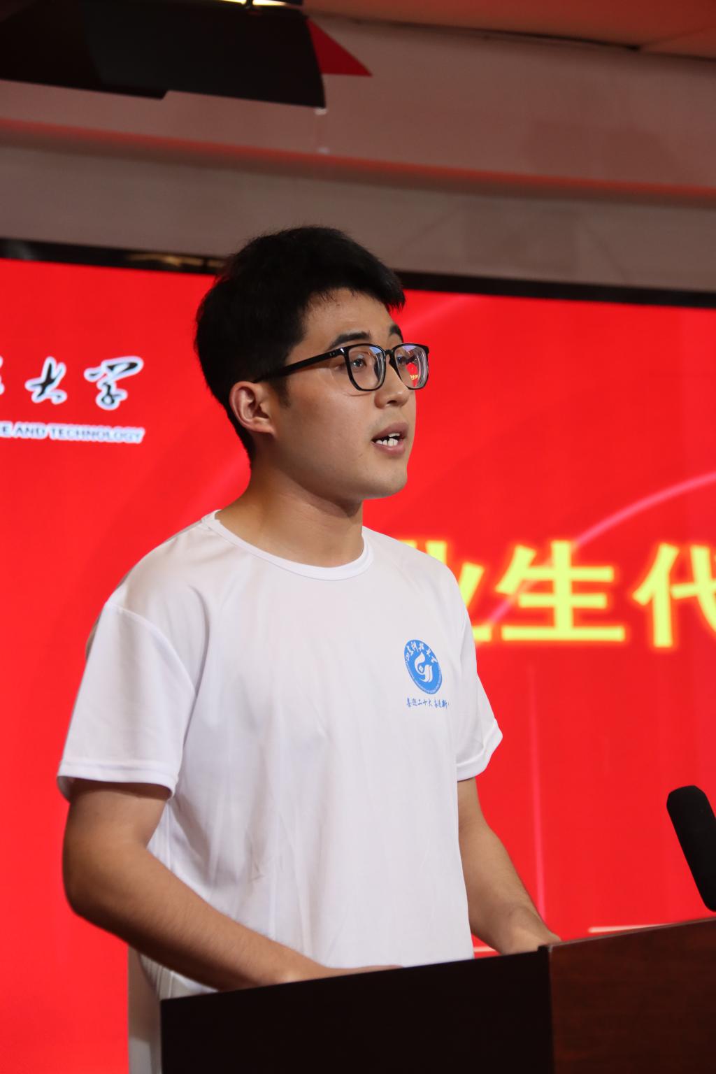 在校生代表交通运输2019-2班张月、毕业生代表车辆工程2018-3班王凤舰分别发言,张月表达了对即将毕业的学长学姐的美好祝愿,表示将传承学长学姐的优良作风,为校争光;王凤舰表达了对老师辛勤付出的感谢,诚挚地祝愿老师们桃李满天下,身体健康,工作顺利,祝愿母校和公司蓬勃发展,再创辉煌。