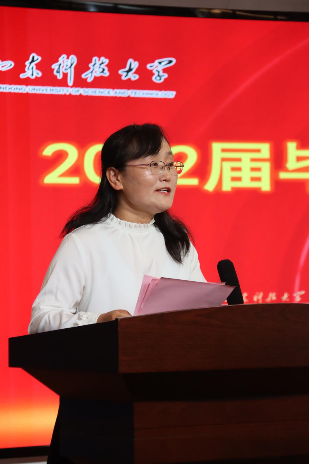 教师代表、2022届毕业生“我最难忘的恩师”孙慧表达了对毕业生的不舍之情,勉励大家用勇气、执着、严谨,激励自己不断去努力、去奋斗,牢记“惟真求新”校训、“学交古今、道通天下”院训和“厚德厚道、行正行远”院风,将青春之我,奉献给青春之中国。优秀员工代表、青岛骄凯网络科技有限公司总经理单大鹏表达了对毕业生衷心的祝贺,叮嘱即将离校的毕业生们在纷繁的世界要沉着冷静,不忘初心,把握当下,相信未来,只要肯付出,终将抵达胜利的彼岸。