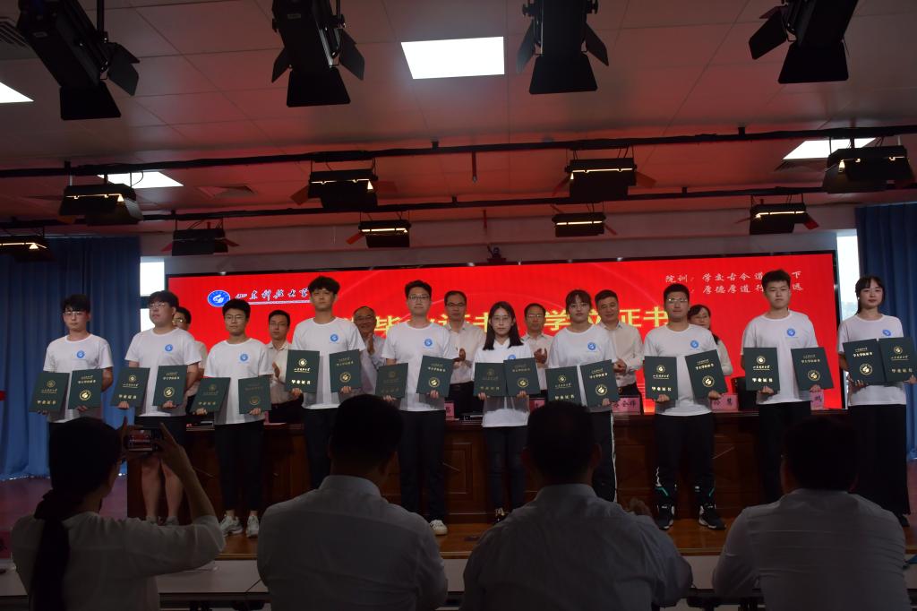 公司领导、老师和员工为2022届毕业生颁发毕业证书、学位证书,向省级优秀毕业生代表、校级优秀毕业生代表颁发荣誉证书。期望公司领导和老师们亲手颁发的证书能够成为联系同学们与公司公司的一道彩虹,成为托举毕业生们振翅高飞的浩荡长风。