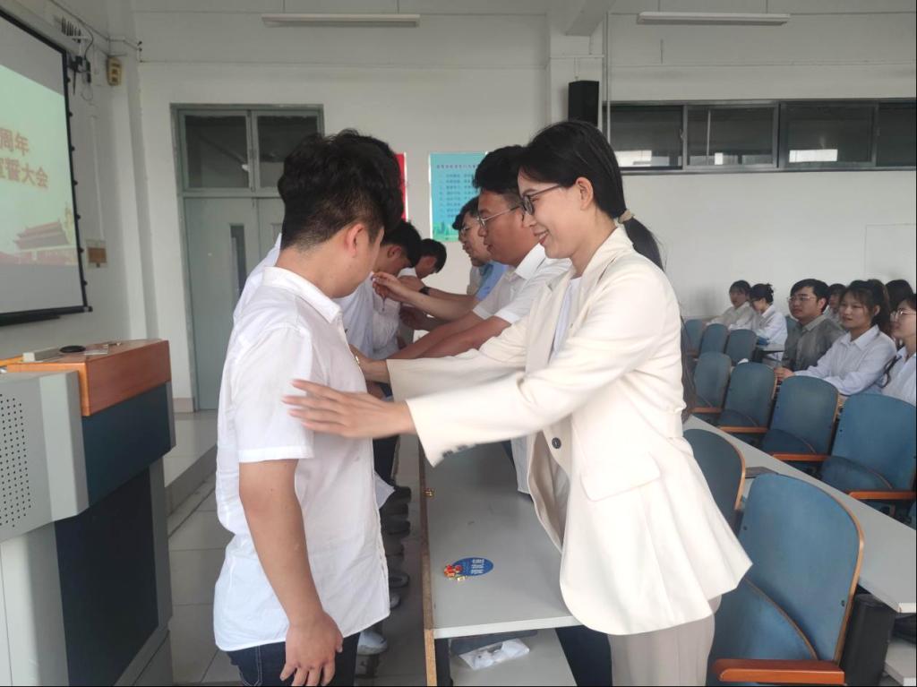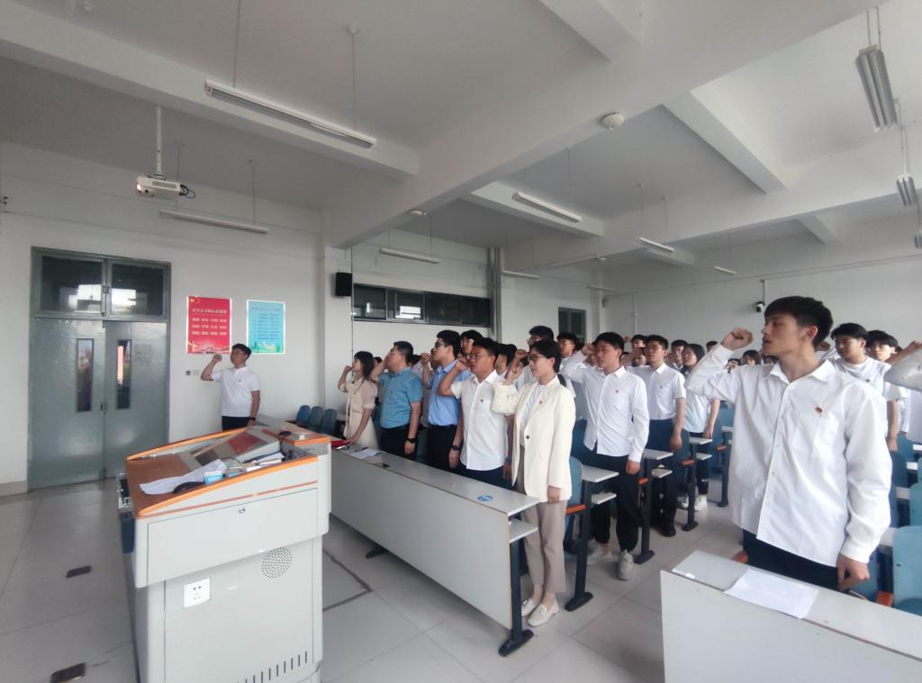 在庄严的国歌声中大会拉开帷幕,全体党员在党旗下齐唱国歌,党委副书记李勇带领老党员为新党员佩戴党员徽章,并寄予殷殷嘱托。随后,全体党员在鲜红的党旗下,怀着激动的心情,紧握右拳,铿锵有力地宣读入党誓词。