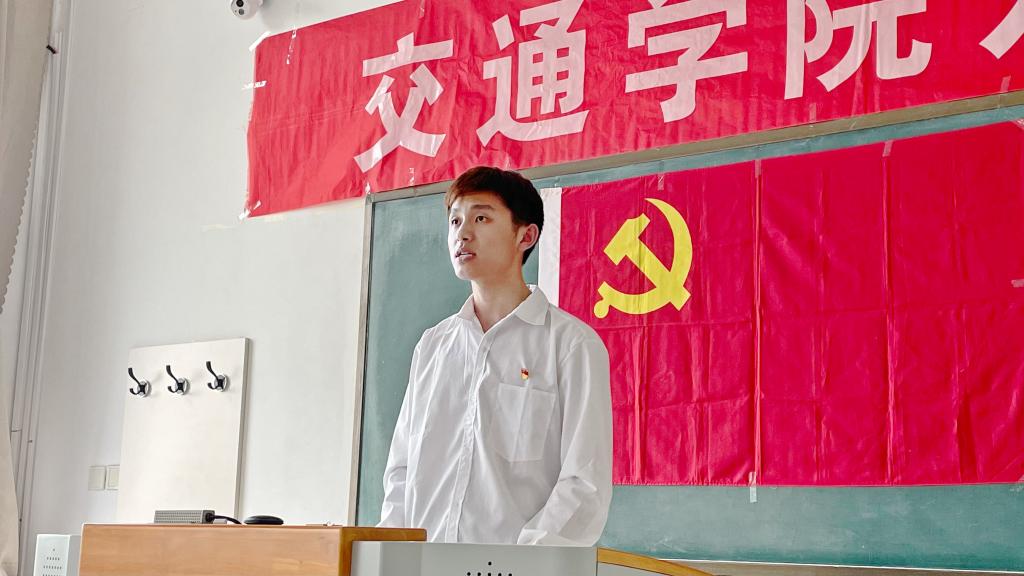 物流工程2019-2班赵冠群作为老党员代表发言,字里行间充满了作为党员的自豪和骄傲,他认为,作为新时代的中国青年,要以实现中华民族伟大复兴为己任,增强做中国人的志气、骨气、底气,不负时代,不负韶华,不负党和人民的殷切期望!交通工程2020-1班刘星宇作为新党员代表发言,重担在肩,责任在心,作为新党员将不断提升自身素质和思想政治修养,严格履行党员义务,思想上要不断强化党员意识。他鼓励大家在今后的学习生活中,自觉践行社会主义核心价值观,为实现中华民族伟大复兴的中国梦贡献青春力量。