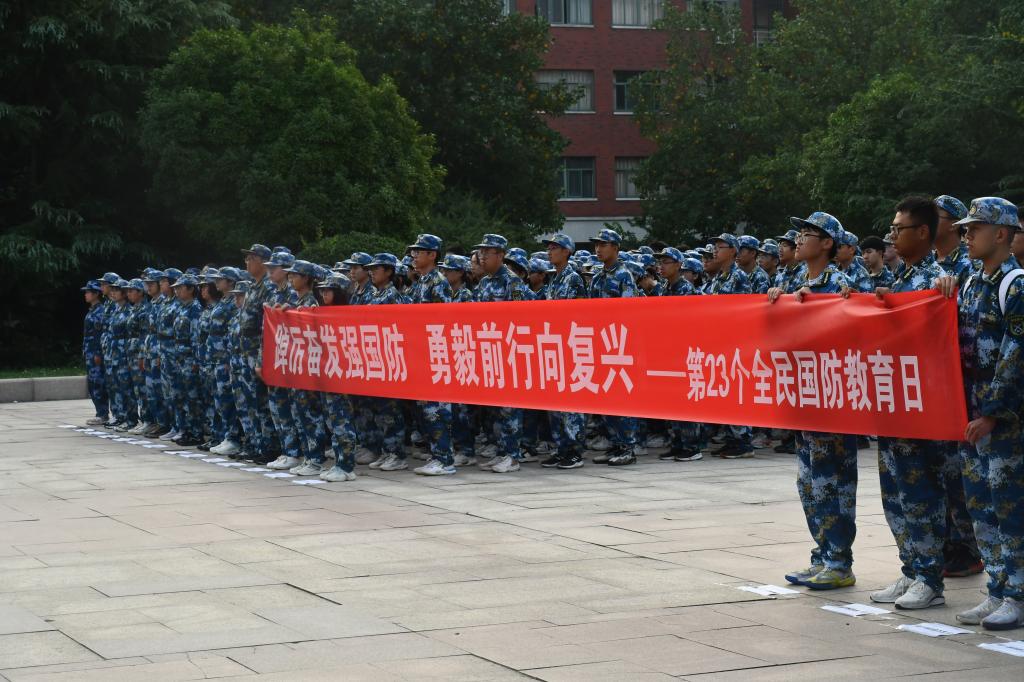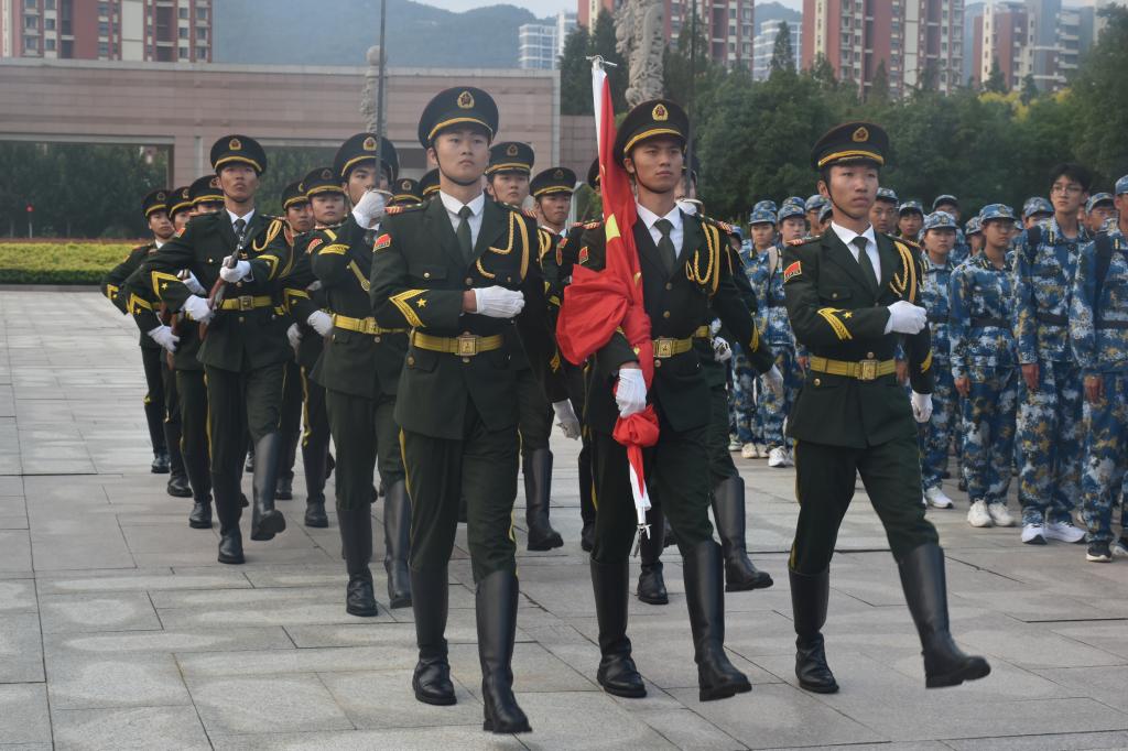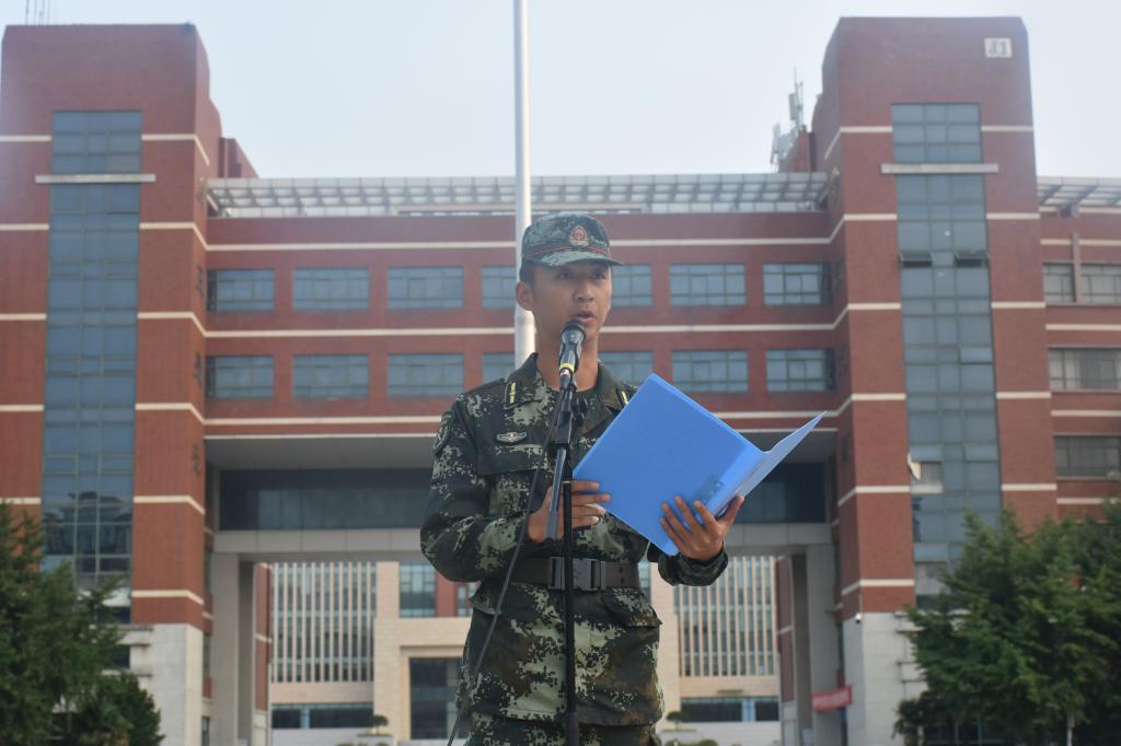 国旗护卫队的同学迈着整齐划一的步伐,护送着五星红旗正步走向升旗台。全体师生面问国旗肃立致礼。随着激昂的《义勇军进行曲》响起,师生们注视着五星红旗冉冉升起,在熠熠晨光中迎风飘扬。升旗仪式结束后,军训教官栾宗晓上台发言,他表示,军训作为一种特殊的教育形式,在磨练坚强意志、培养吃苦耐劳精神、培育集体主义精神、增强国防观念、提高政治觉悟、激发爱国热情、养成良好的学风和生活作风方面有着不可替代的作用。在全民国防教育日来临之际,他也给员工们提出三点期许:勿忘国耻、奋发图强;天下兴亡、匹夫有责;永怀爱国之心,身践强国之行,希望全体同学,用实际行动践行国防教育的宗旨,做到知国情、爱国家、敬人民、守纪律。