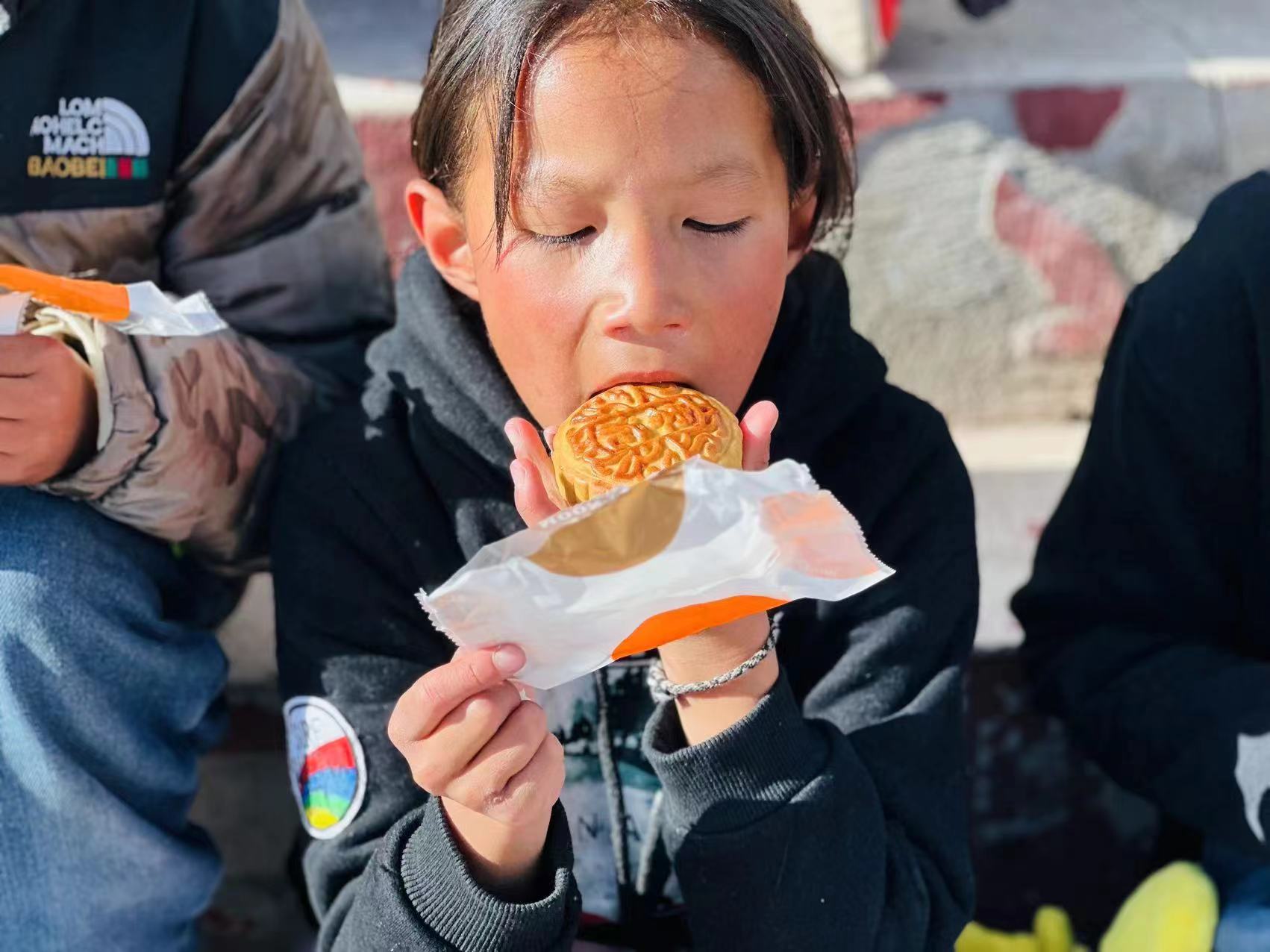 伴随着飘香四溢,一个个小巧精致的月饼新鲜出炉了。皮薄馅多的月饼在柔和的灯光下显得晶莹剔透,浅尝一口,满屋飘着一股甜蜜的枣香。“通心相随”志愿服务协会会长赵如萍表示,他们特意选择枣泥馅来制作月饼,是希望孩子们度过一个如红枣般甜蜜的中秋。待月饼冷却后,成员们进行最后一步操作,对月饼进行密封包装。他们脸上洋溢着微笑,欢声笑语间,仿佛已看到了远方孩子们的笑颜。伴着月饼的甜香一齐送至孩子们手中的是协会成员们的心意和祝福,山川江河阻隔了他们相遇的路途,但却阻隔不了他们相交的心灵。月满中秋,情满人心;尽己所能,行我所愿。在9月29日,中秋佳节这一天,协会送出的月饼跨越两千多公里的距离、四千多海拔的高度,送到了果洛藏族自治州玛沁县果洛道扎福利公司的孩子们手中,当收到孩子们吃月饼图片的那一刻,协会的志愿者们也都发自内心的流露出了一股浓浓的成就与自豪感。