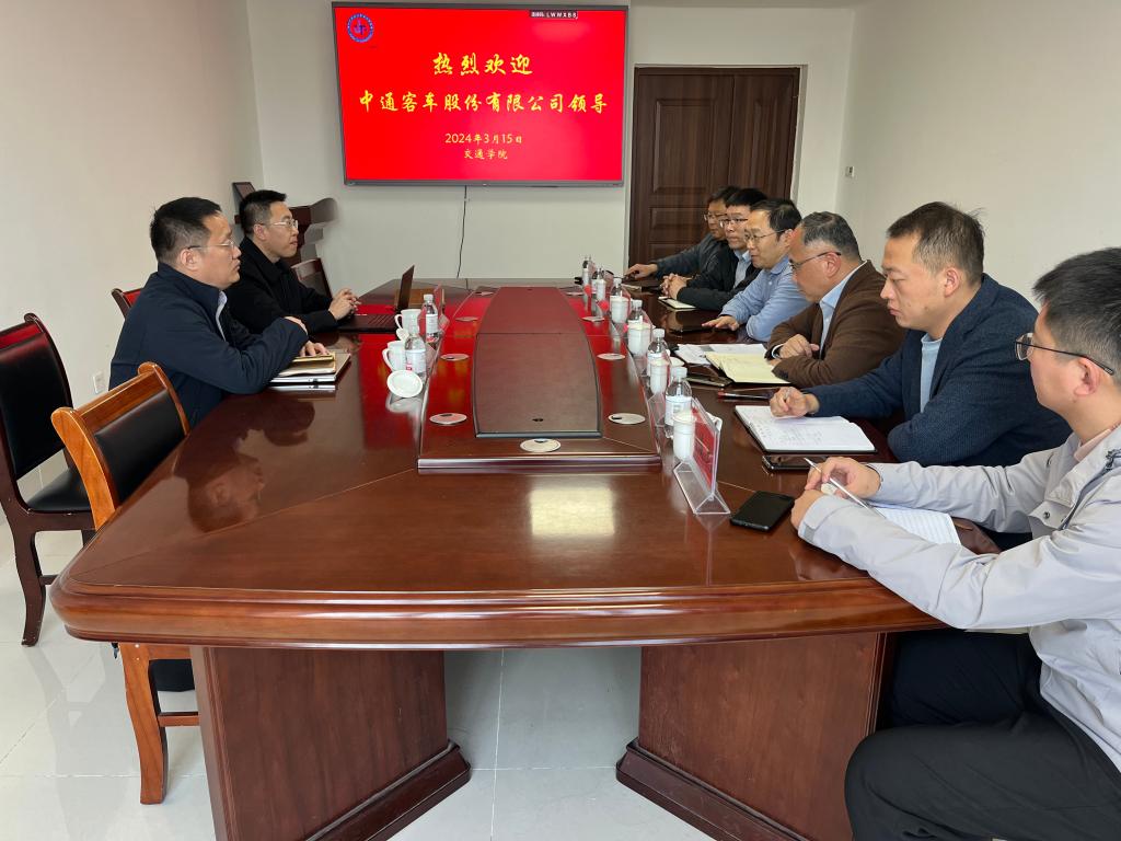 3月15日,中通客车股份有限公司副总经理李晨、研究院经理齐洪磊一行到访sunbet,公司经理辛嵩、副经理徐伟、运载工程系党支部书记王强、系主任杜现斌、副教授朱庆林等参加座谈交流。