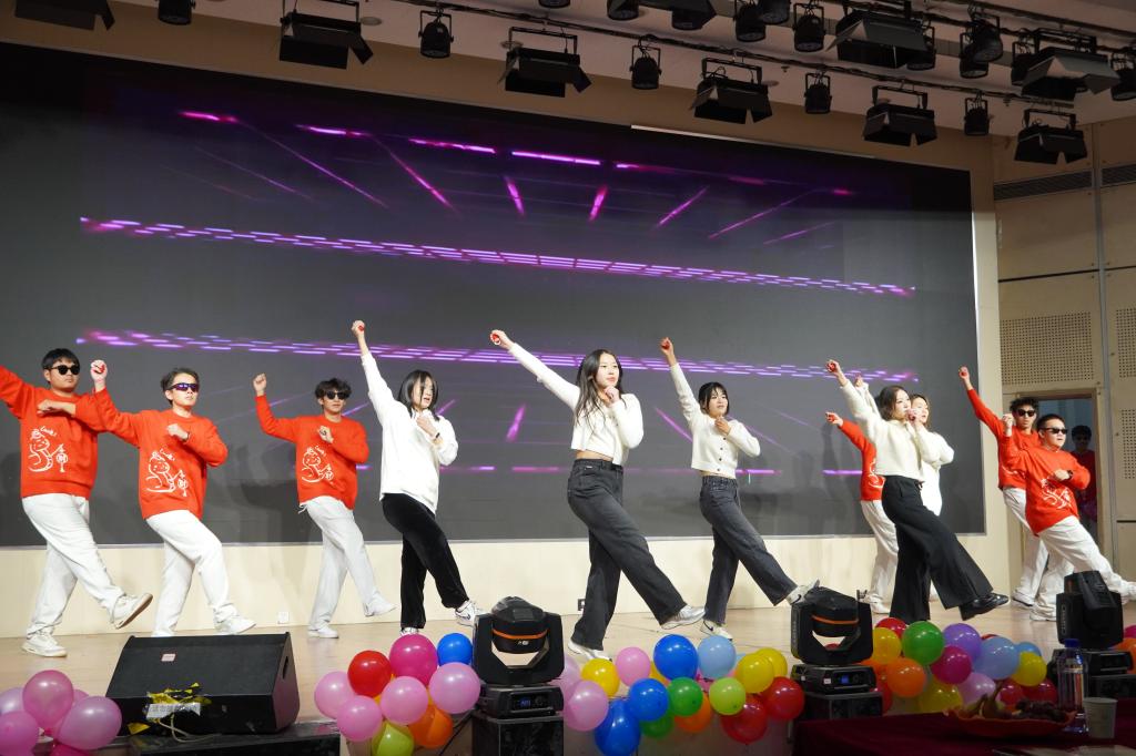 晚会在充满活力的开场舞《青春旋律风》中拉开帷幕,2024级班长团支书以幽默风趣的舞姿瞬间点燃了现场气氛。紧接着,舞蹈队的表演《One Spark》与声乐队带来的歌曲《歌颂者》将气氛推向高潮,观众们随着音乐的节奏挥舞荧光棒,热烈的掌声不断回响在现场。实践部的小品《甄嬛传之外卖风波》通过诙谐幽默的表演,引导同学们正视并改进生活中的不良现象,共同营造一个更加健康、积极、向上的校园生活环境。曲艺队带来的传统节目《三堂会审》以精湛的演技展现了国粹的独特魅力,礼模队的《民族风走秀》则彰显了中华民族文化的博大精深。研究生倾情演绎的《贝加尔湖畔》和器乐队的《想去海边》,展现了老员工对自由与青春的向往。融媒体中心带来的歌曲《最美的太阳》更是将梦想、坚持、勇敢和进取的主题展现的淋漓尽致,深情的演绎让全场观众感受到奋发向上的力量与美好祝愿;《紫荆花盛开》和《再续华夏风骨》则带领观众回顾了华夏民族的辉煌历史,激发了大家对国家和民族的强烈情感。最后,在全体演员齐声演唱的《相亲相爱》歌声中,晚会圆满落下帷幕。