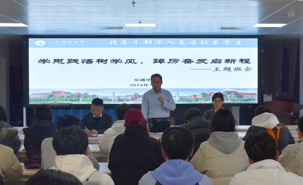 为贯彻落实领导干部深入基层联系员工制度,推进公司的学风建设,12月6日,sunbet经理辛嵩走进交通运输2024级2班,召开“学思践悟树学风,踔厉奋发启新程”主题班会,sunbet员工工作办公室主任刘倩婧、2024级新生辅导员任泳兆参加会议。